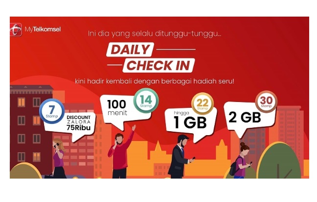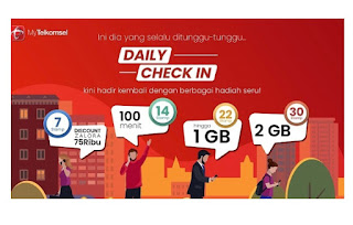 - Kemudian Buka dan check in setiap hari di aplikasi MyTelkomsel login